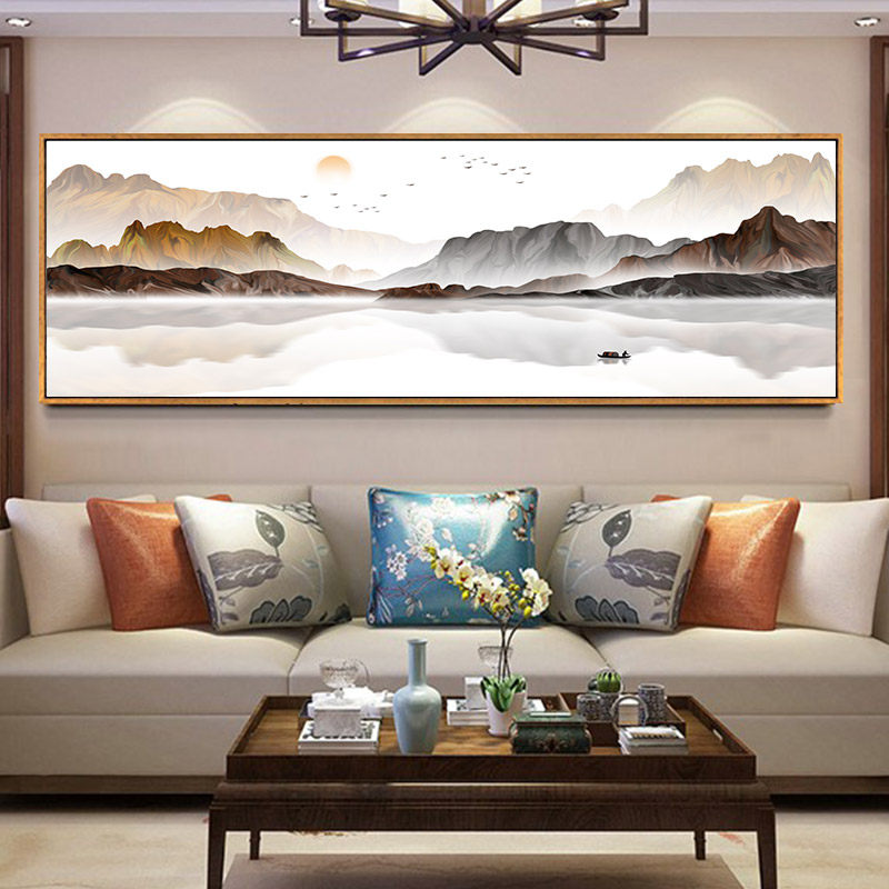 横幅山水挂画客厅装饰画茶室背景墙玄幻禅意壁画新中式中国风墙画热门设计联盟服务商