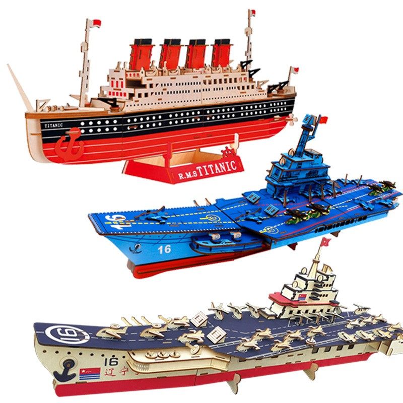 拼图辽宁号优惠3D立体diy木制模型益智玩具航母激光切割量大地摊热门设计联盟服务商