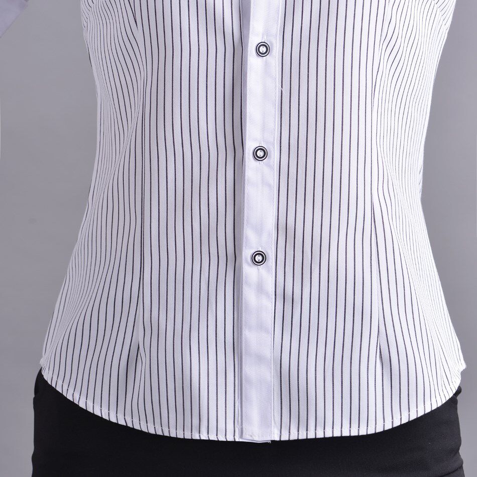 蓝白竖条纹短袖衬衫女夏季职业装酒店工装大码工作服衬衣女士长袖热门设计联盟服务商