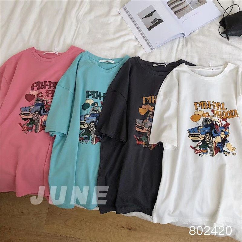 JUNE圆领短袖T恤女卡通简约设计百搭休闲棉上衣韩版女装宽松显瘦热门设计联盟服务商