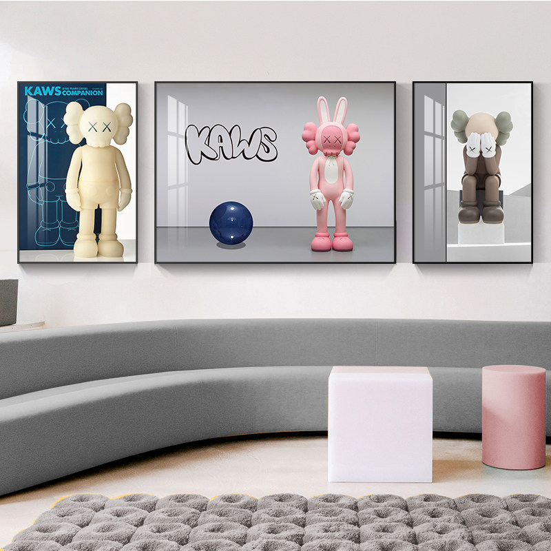 潮牌kaws客厅装饰画现代简约沙发背景墙挂画卡通暴力熊公仔三联画热门设计联盟服务商