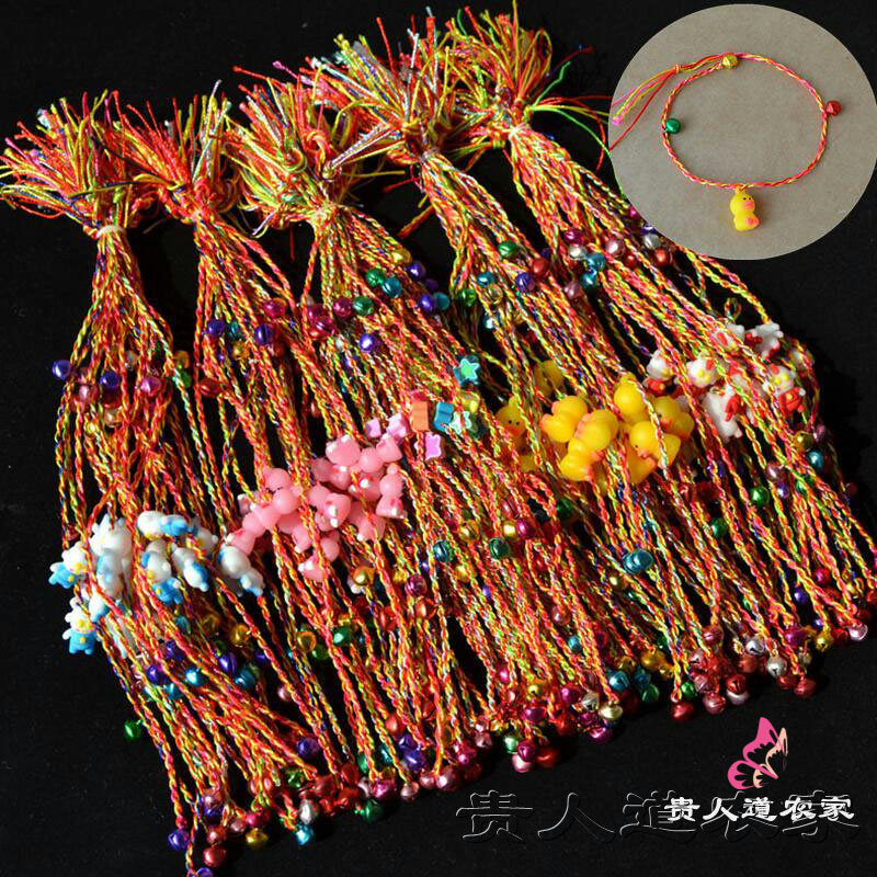 虎年端午节五彩绳手链软胶卡通小动物编织手绳五色线铃铛脚链饰品热门设计联盟服务商