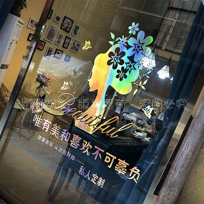 个性美容院美甲店玻璃门贴纸养生会所橱窗创意广告装饰店铺墙贴画热门设计联盟服务商