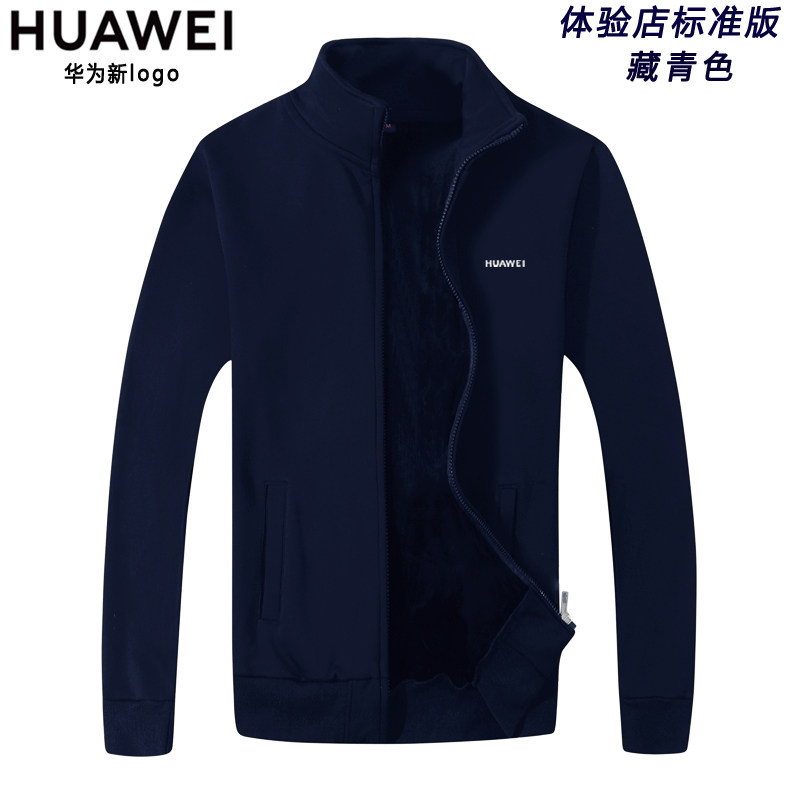 新藏蓝兰华为工作服立领卫衣秋冬体验店藏青工装拉链外套印字定制热门设计联盟服务商