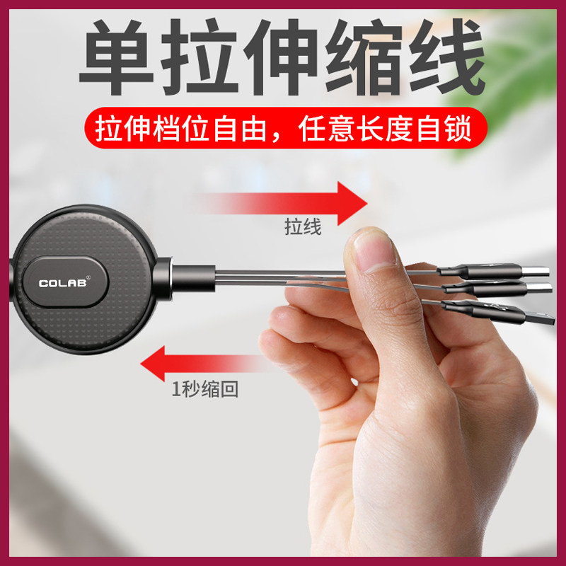 单拉伸缩数据线三合一适用苹果11安卓type-c小米10充电线华为p40热门设计联盟服务商