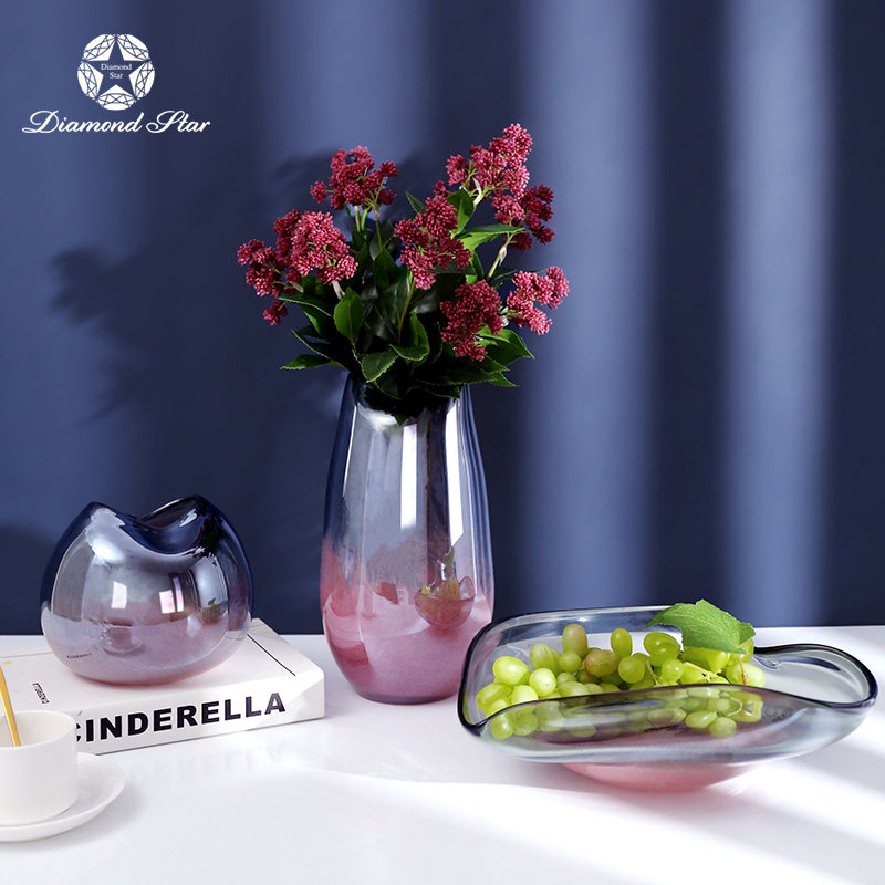 钻石星 高级感网红花瓶玻璃 创意简约插花瓶客厅餐桌装饰艺术摆件热门设计联盟服务商