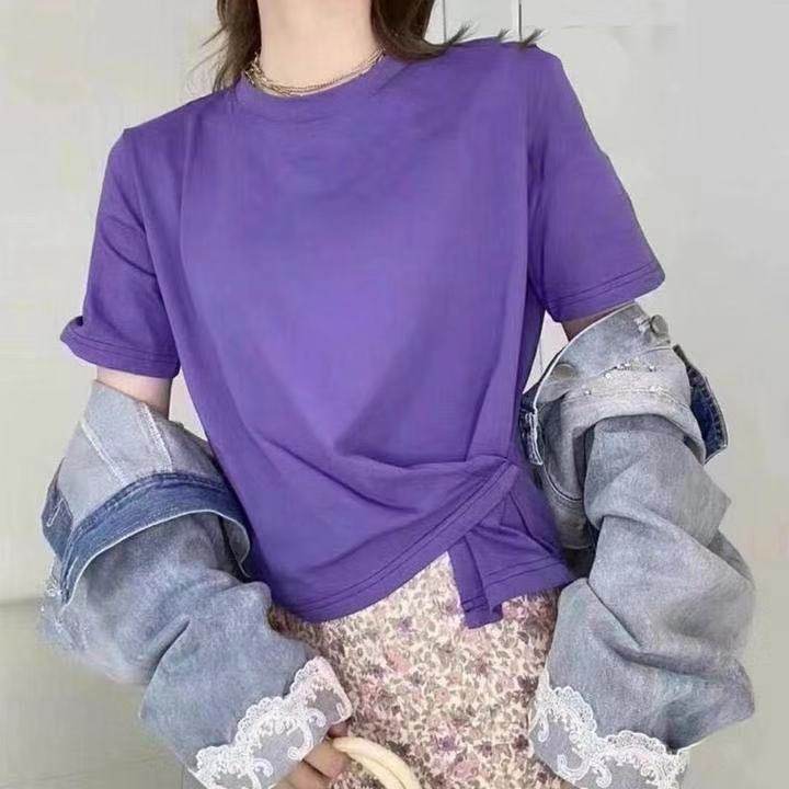 亚米尔服饰夏新款设计感小众侧边交叉短袖T恤侧边扣心机短款上衣1热门设计联盟服务商