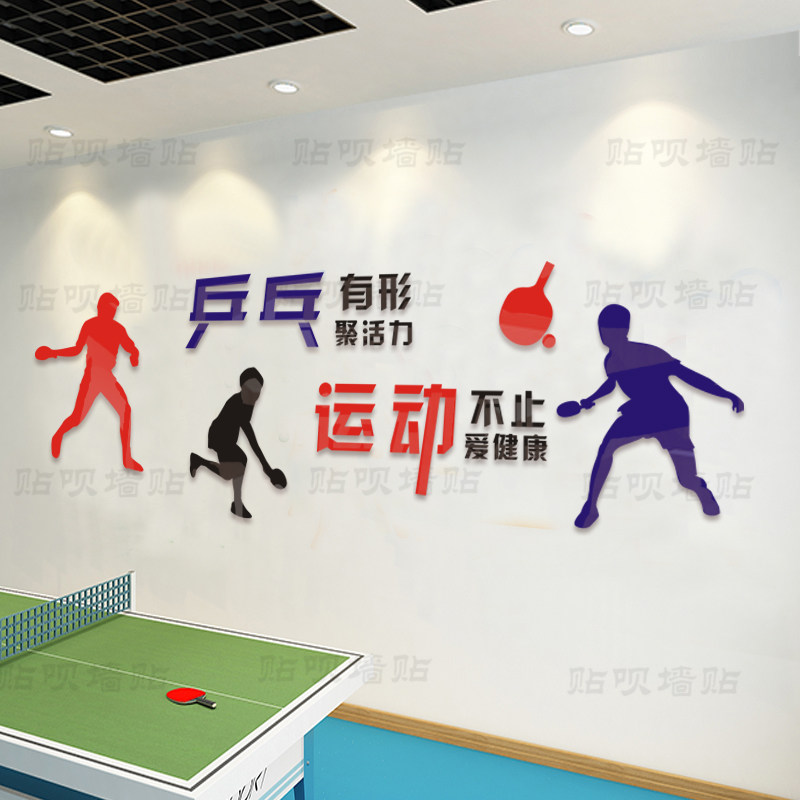 乒乓球运动墙贴健身房墙贴画亚克力3立体校园文化墙装饰走廊贴纸热门设计联盟服务商