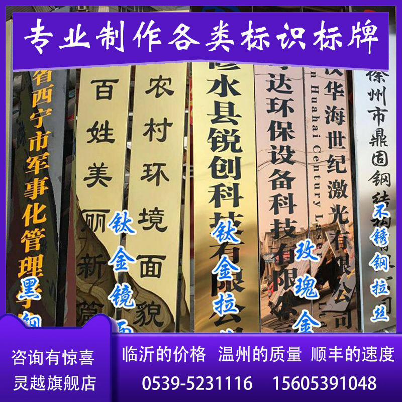 灵越标识 铜牌定做定制不锈钢牌匾公司门牌厂牌招牌挂牌腐蚀牌钛金牌户外门头工厂企业单位村委会广告牌制作