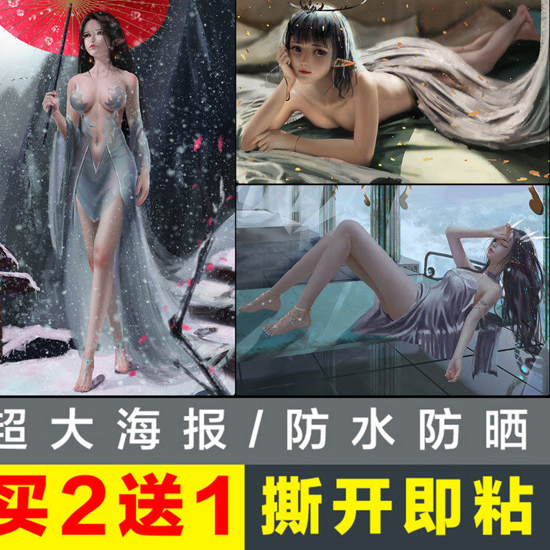 新二次元美女漫画高清海报定制印刷动漫唯美图片自粘墙贴定制热门设计联盟服务商