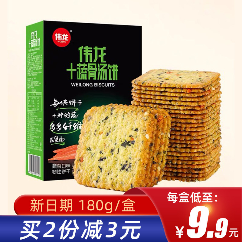 伟龙十蔬骨汤饼180g薄脆饼干袋装零食小包装整箱休闲办公小饼干热门设计联盟服务商