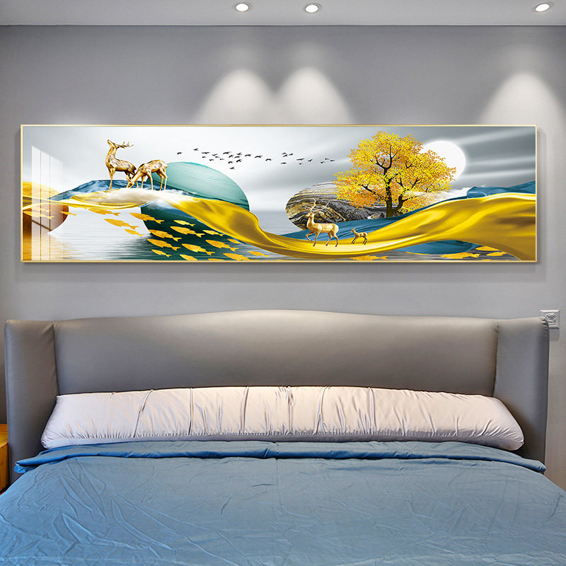 欧式轻奢卧室装饰画墙画鹿高档主卧床头画横幅大尺寸现代沙发挂画热门设计联盟服务商