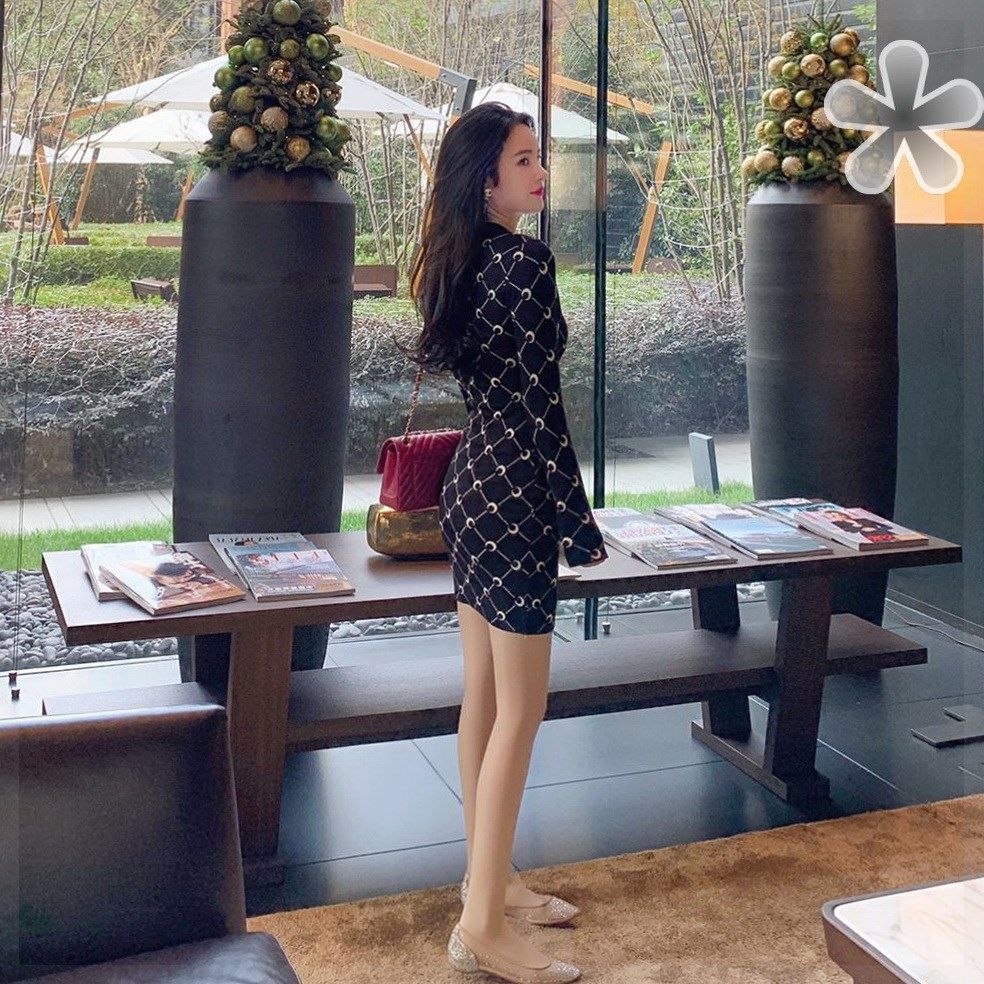 司凰轻奢 双12新品 經典设计气质月亮黑白菱格厚内搭针织连衣裙热门设计联盟服务商