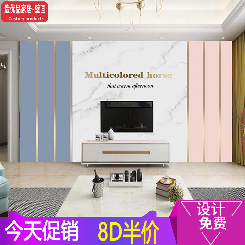 8D客厅影视墙墙布新款电视背景墙壁纸现代简约北欧几何不规则壁画热门设计联盟服务商