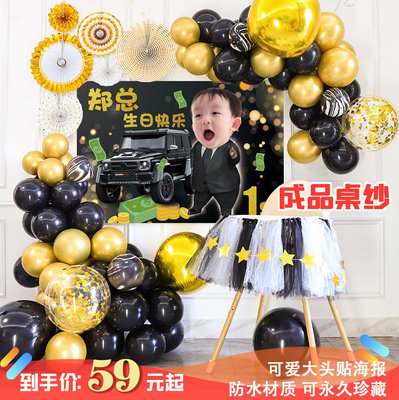 宝宝周岁布置生日装饰气球儿童百天场景男孩女定制海报照片背景。热门设计联盟服务商