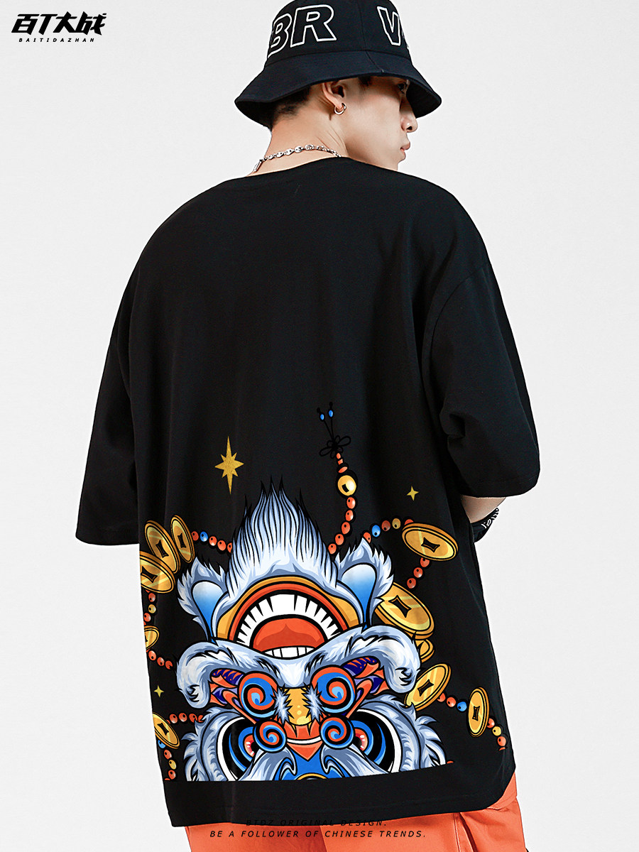 国潮t恤男2020新款醒狮设计感潮牌情侣白色纯棉短袖宽松男装上衣热门设计联盟服务商