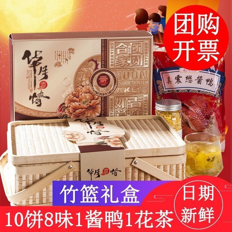 中秋竹篮月饼礼盒装蛋黄莲蓉豆沙伍仁多口味团购定制中秋送礼热门设计联盟服务商