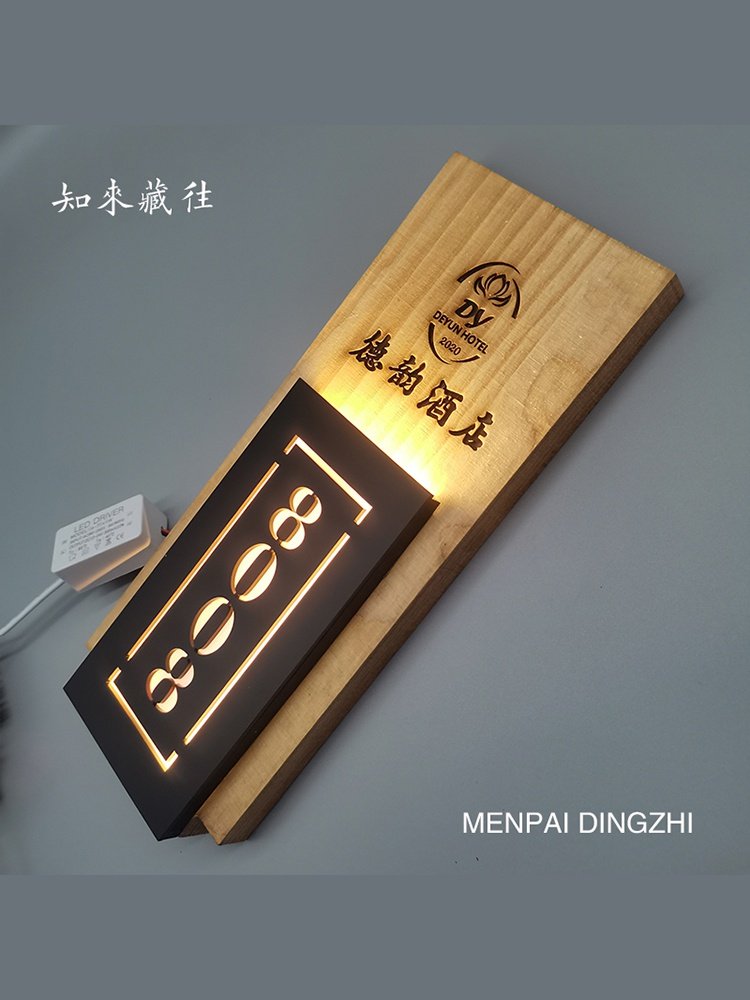 包厢宾馆发光标识门牌创意实木纹质带灯房号设计定制logo复古茶。热门设计联盟服务商