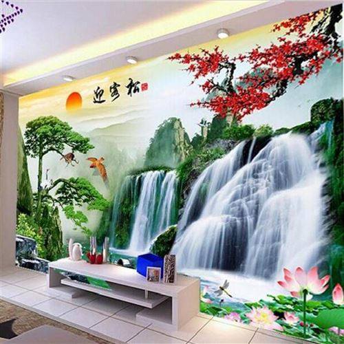 5d迎客松3水画山d8视背景墙装饰壁纸客厅卧室壁画电d墙纸影视墙布热门设计联盟服务商