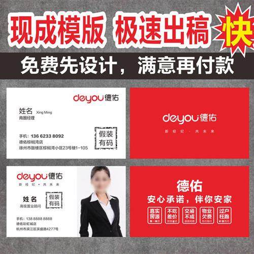 德佑名片制作订做免费设计二维z码照片德祐地产经纪U人贝壳房产中热门设计联盟服务商
