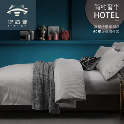 简约纯棉套新疆长绒棉纯色缎条B五星级酒店棉四件全床上用品热门设计联盟服务商