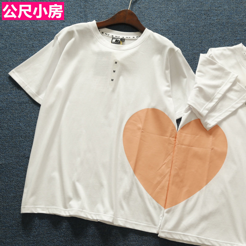 潮牌女装夏季短袖T恤 时尚桃心设计 左右可情侣拼接纯棉针织衫热门设计联盟服务商