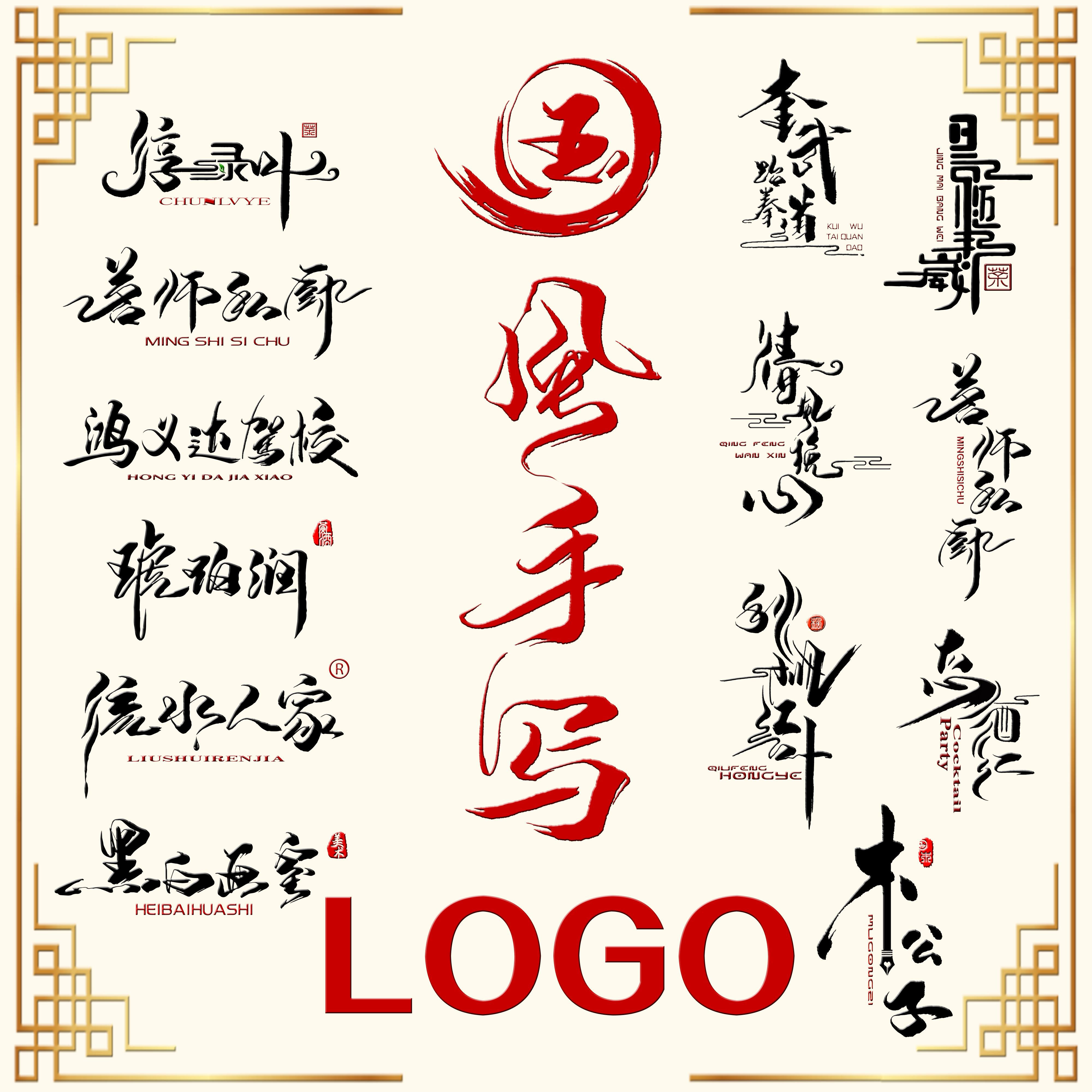 纯手写文字LOGO设计国潮风字体用于店铺招牌包装等各类印刷品展示热门设计联盟服务商