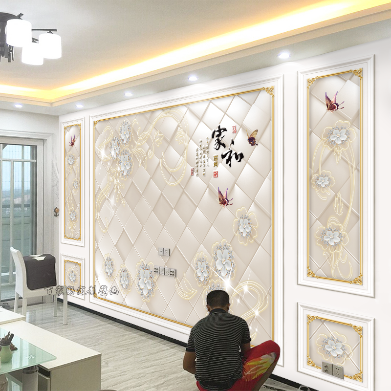 电视背景墙壁纸大气壁画无缝墙布8d浮雕现代简约客厅影视墙3d墙纸热门设计联盟服务商