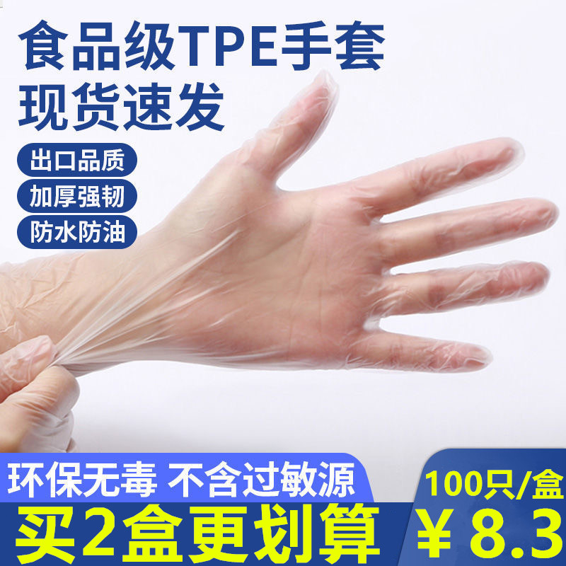 一次性手套TPE食品级餐饮厨房美发加厚耐用家务防护防水100只盒装热门设计联盟服务商