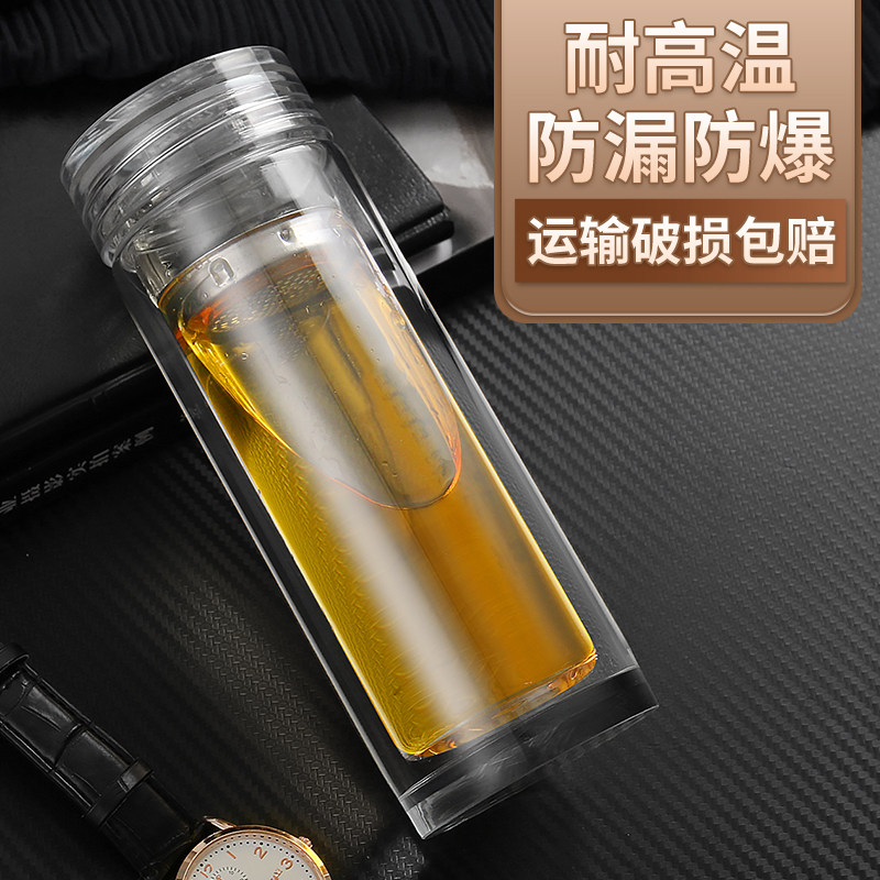 品莉双层水晶玻璃水杯子定制logo做广告赠送免费设计促销宣传礼品热门设计联盟服务商