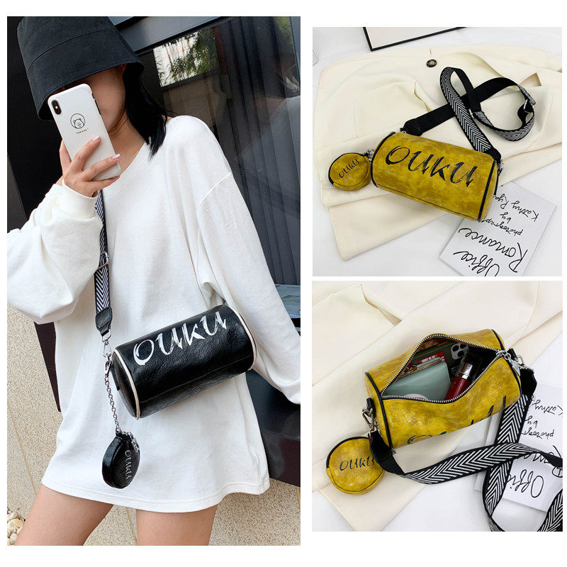 圆筒包包女圆柱形小众设计斜挎小包宽肩带韩版简约百搭软皮单肩包热门设计联盟服务商
