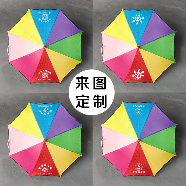 儿童伞定制印字印logo幼儿园雨伞长柄广告小学生彩虹伞来图订做热门设计联盟服务商