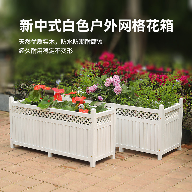 防腐花箱户外庭院大花盆室外长方形实木制花槽白色阳台木质种植箱热门设计联盟服务商
