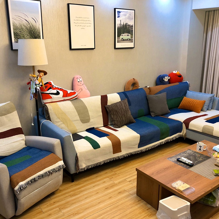 小众国外设计 简约色块ins风沙发毯墙面装饰挂毯盖毯多功能毛毯热门设计联盟服务商