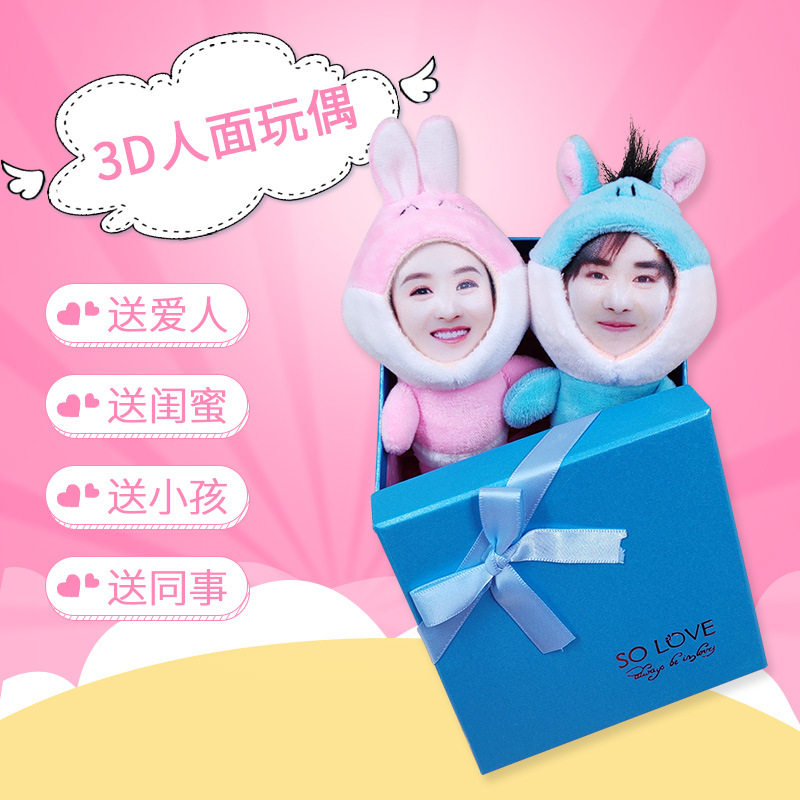 diy定制照片玩偶3d人脸娃娃公仔挂件男朋友七夕圣诞节生日礼物女热门设计联盟服务商
