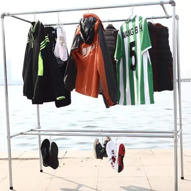 镀锌钢管水管凉衣架简易落地室外双杆水管晒被家用阳台挂衣晾衣架热门设计联盟服务商