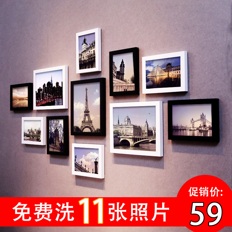 现代简约照片墙创意相片挂墙背景装饰客厅卧室免打孔相框挂墙组合热门设计联盟服务商