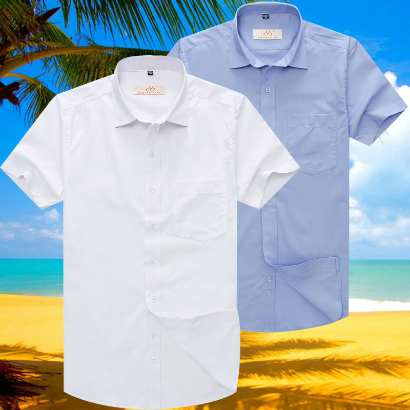 清仓14元 男士白色衬衫夏季短袖正装半袖职业工装纯白衬衣大码蓝热门设计联盟服务商