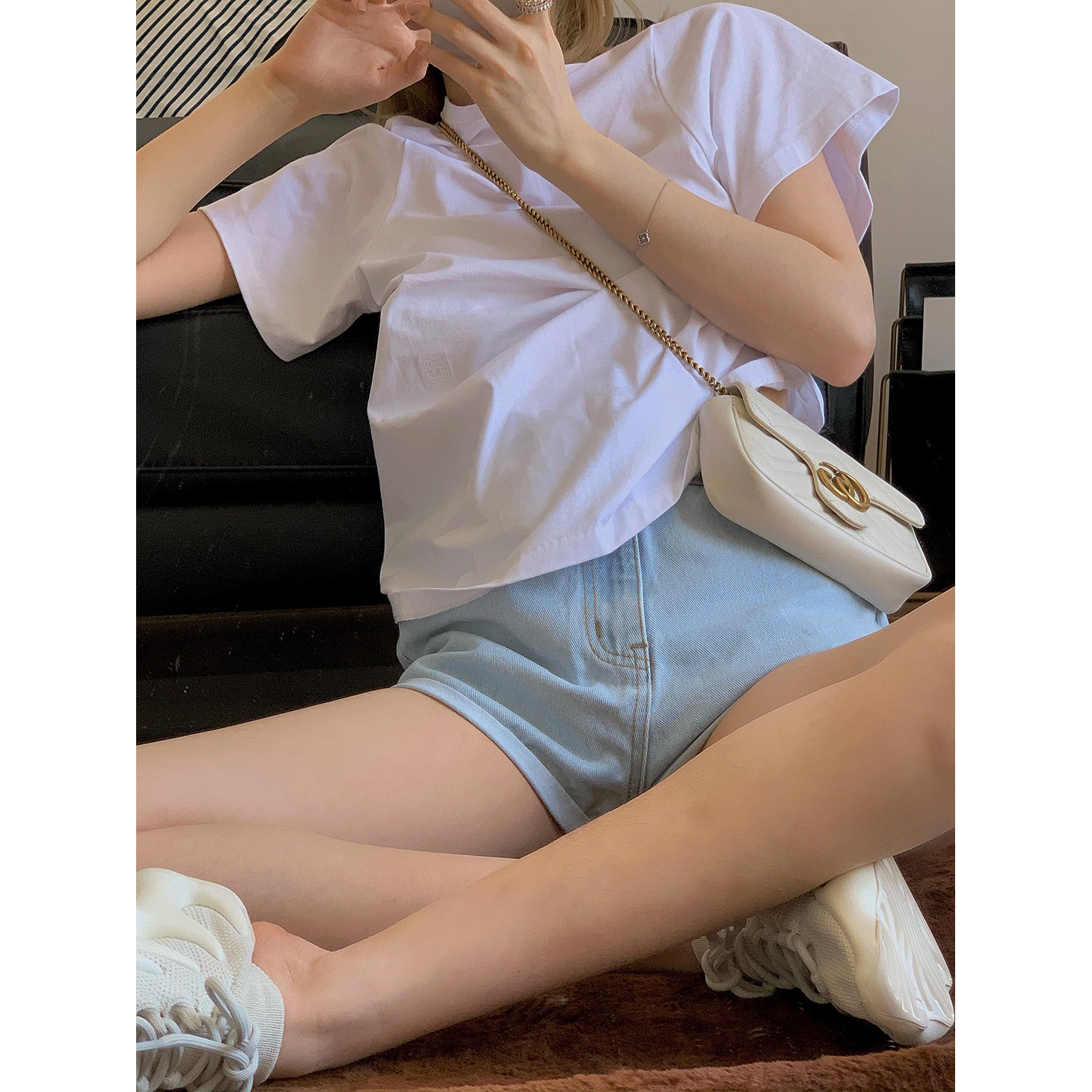 NSS COLLECTION Toteme经典挖肩弧形刺绣设计感上衣夏白色短袖t恤热门设计联盟服务商
