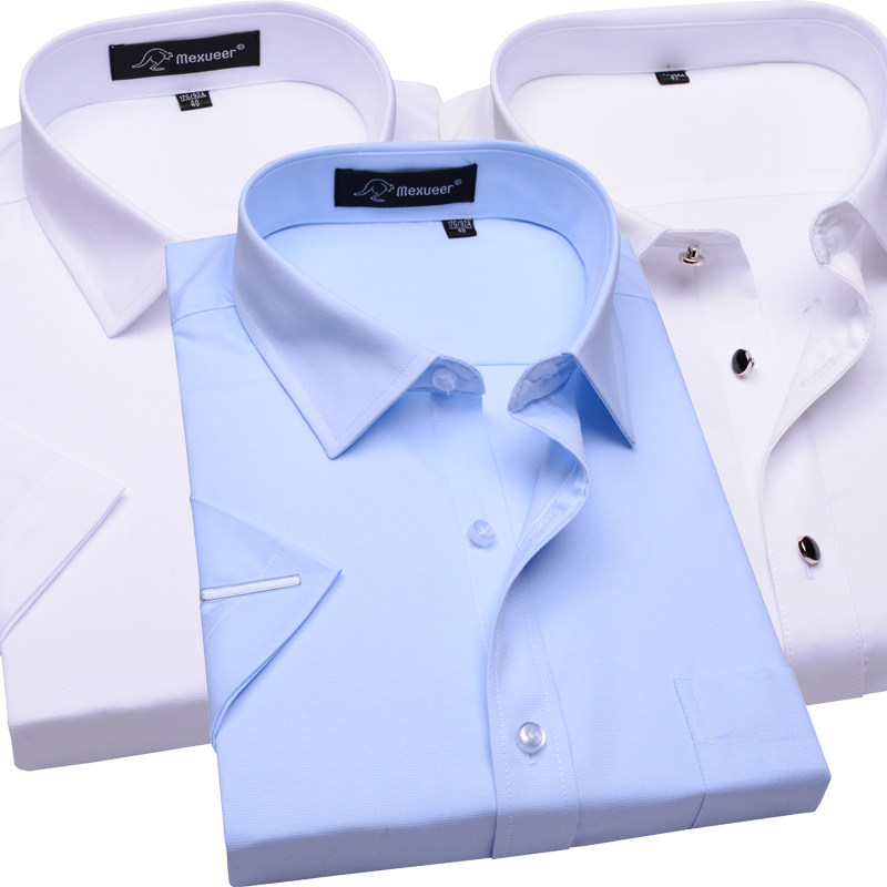 男士短袖纯白色职业工装衬衫全棉浅蓝色商务正装竹纤维半袖白衬衣热门设计联盟服务商
