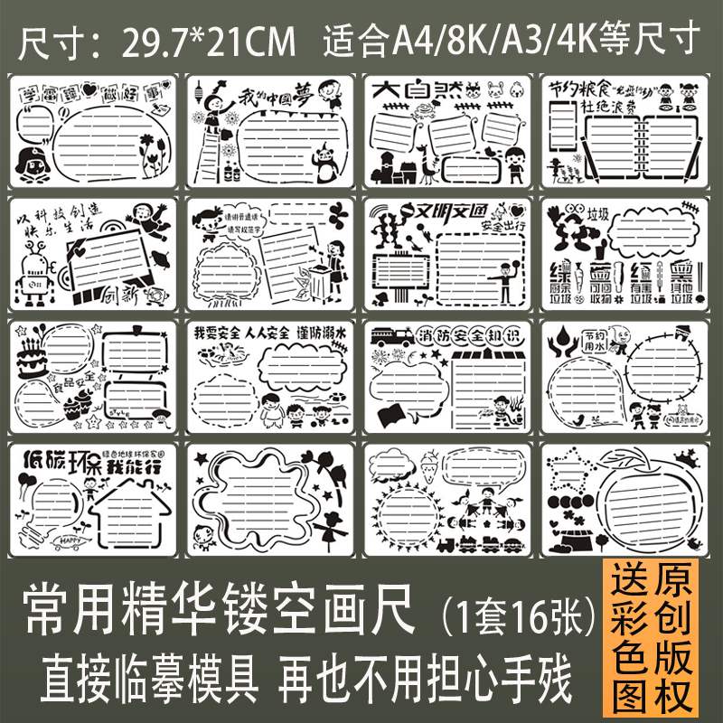 临摹镂空手抄报学生汉字模板节日主题文字报头手工小报绘画预绘尺热门设计联盟服务商