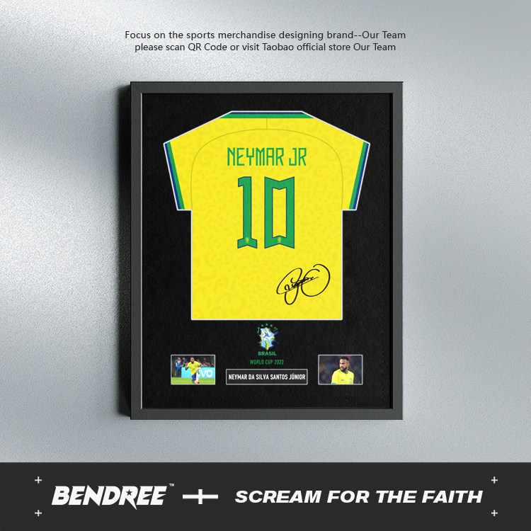 巴西足球队周边签名实木相框 内马尔球衣装饰画里沙利松插画海报热门设计联盟服务商