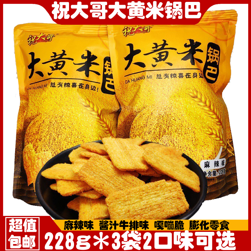 祝大哥大黄米锅巴228克*4袋麻辣酱汁牛排味网红膨化零食休闲 包邮热门设计联盟服务商