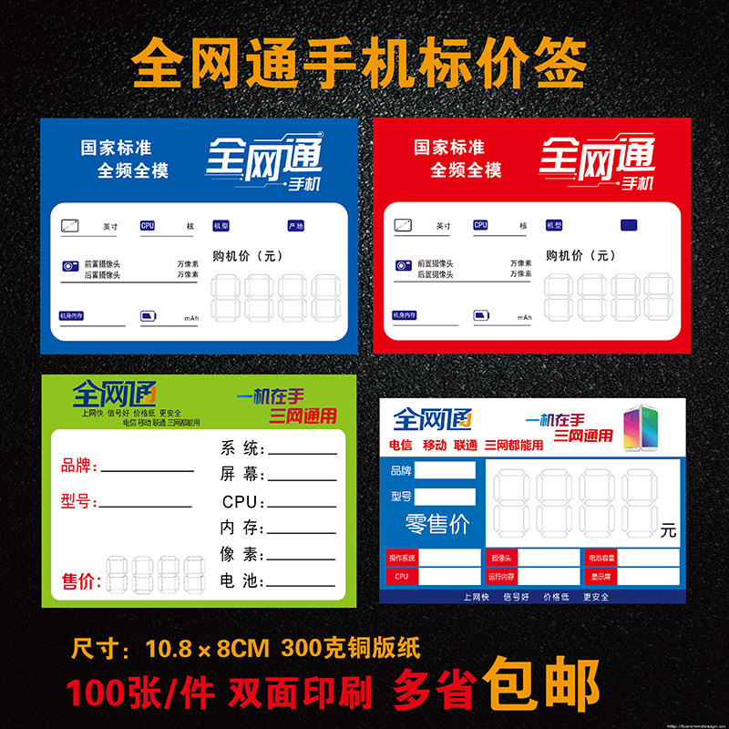全网通标价签手机价格签移动联通电信手机价格牌标价牌标签纸定制热门设计联盟服务商