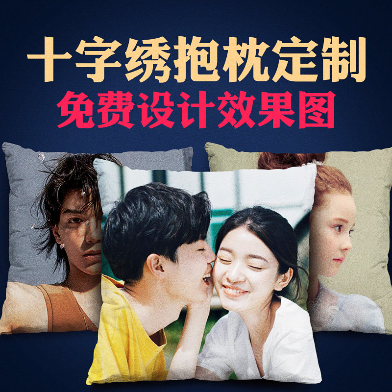 十字绣抱枕定制照片自己绣枕套手工刺绣2021新款线绣情侣diy真人热门设计联盟服务商