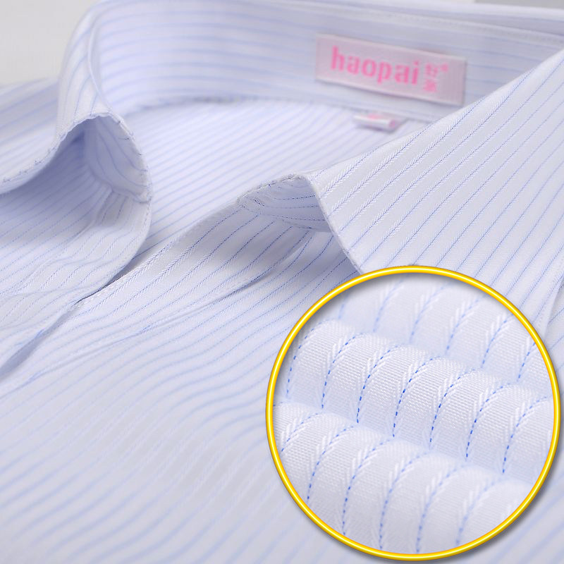 好派职业装女衬衫 夏季白底蓝条纹短袖OL大码工装V领修身半袖衬衣热门设计联盟服务商