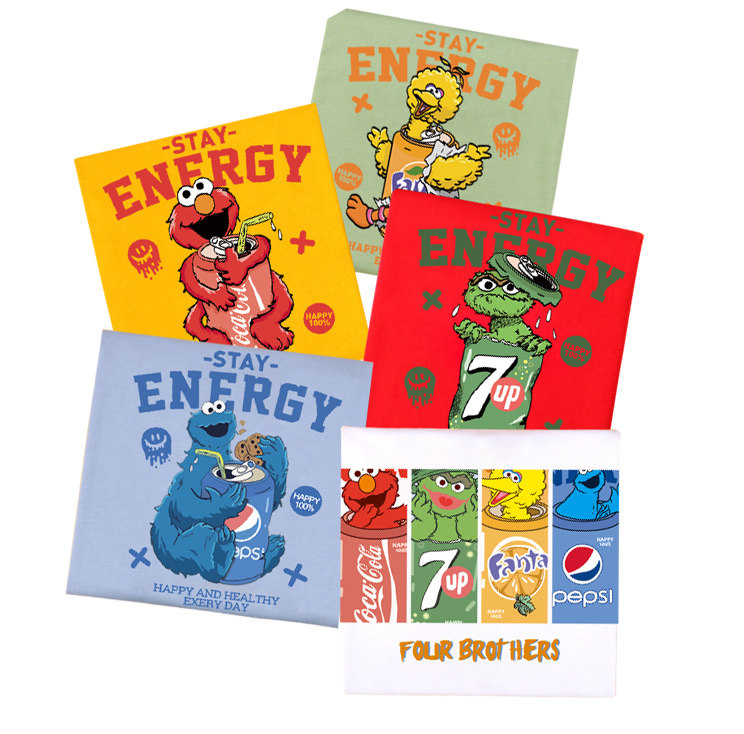 2021夏装新款小众设计芝麻街印花纯棉短袖T恤衫ins潮牌宽松情侣装热门设计联盟服务商