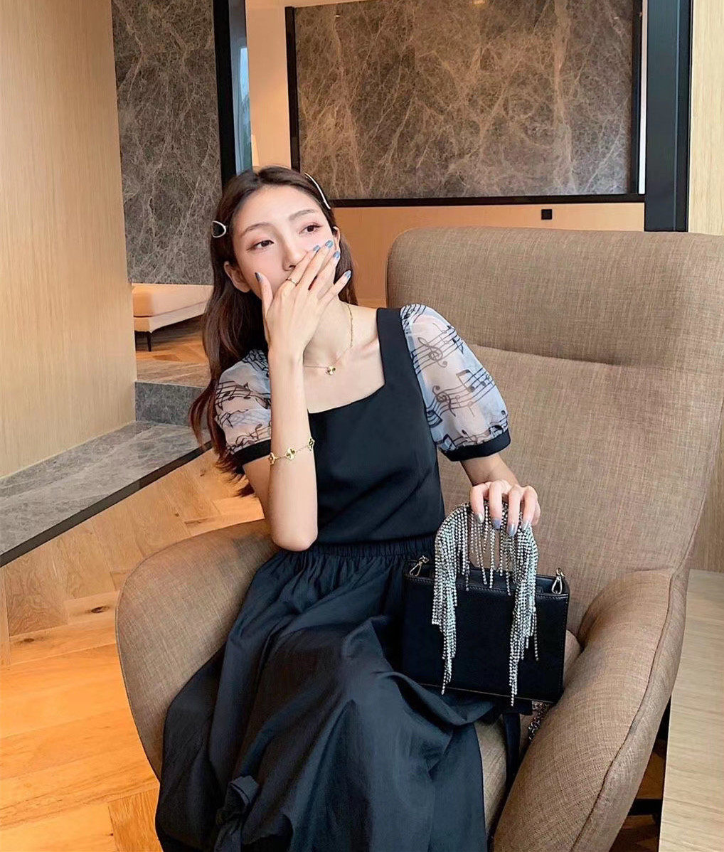 @X 侨J 原 D家设计款 音符少女欧根纱拼接袖子小上衣后背有热门设计联盟服务商