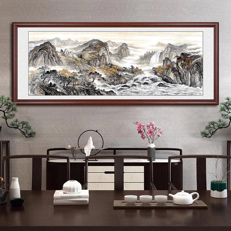 客厅中式装饰画沙发背景墙横幅超大山水画办公室招财风景国画挂画热门设计联盟服务商